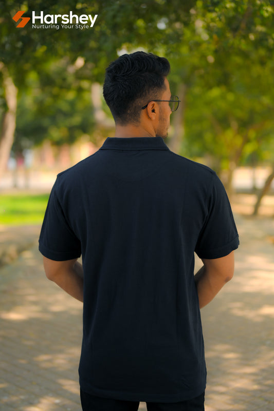 Classic Navy Blue Cotton Polo with Embroidered Logo
